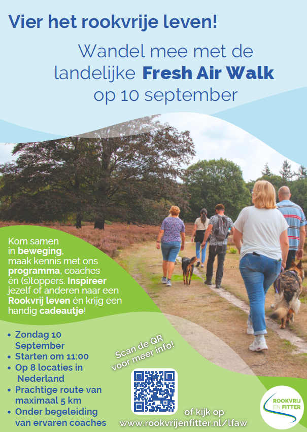 Want, op zondag 10 september verzamelen we op 8 locaties in Nederland en vieren we het rookvrije leven met een heerlijke Fresh Air Walk.