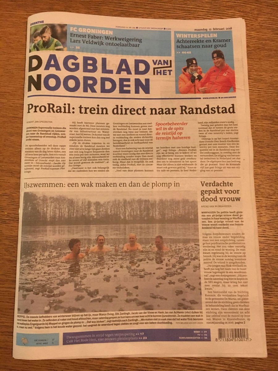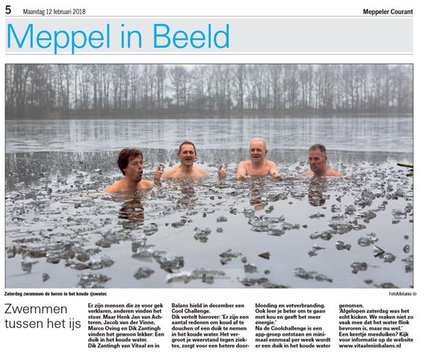 Er komt steeds meer belangstelling voor onze COOLE DUIK die wij wekelijks doen. De afgelopen weken was ons verhaal o.a. te lezen op de voorpagina van het Dagblad van het Noorden, in de Meppeler Courant en de Hoogeveensche Courant.